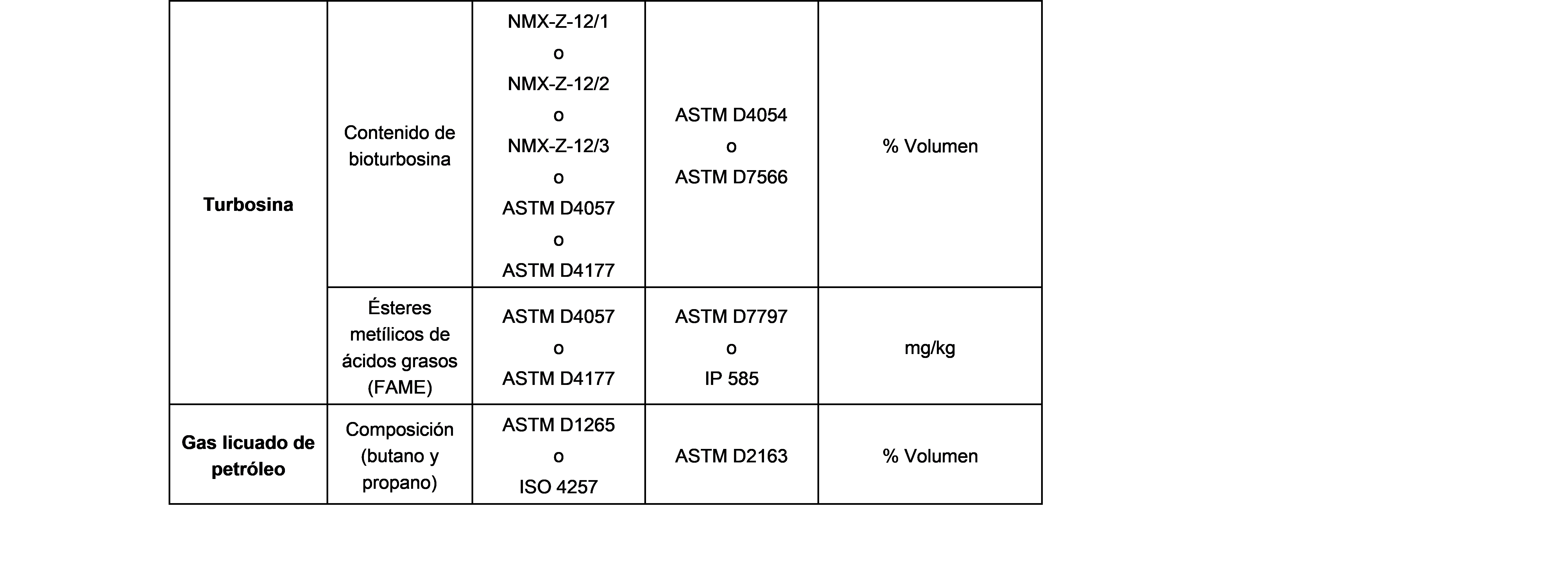 c) Tratándose de turbosina, es válido informar cualquiera de las propiedades enlistadas, ya sea el contenido de bioturbosina o en su caso el contenido de Ésteres metílicos de ácidos grasos (FAME).