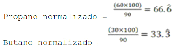 Se debe normalizar al 100% la suma de los porcentajes de propano y butano obtenidos de la cromatografía y con ello ajustar los porcentajes de estos componentes.